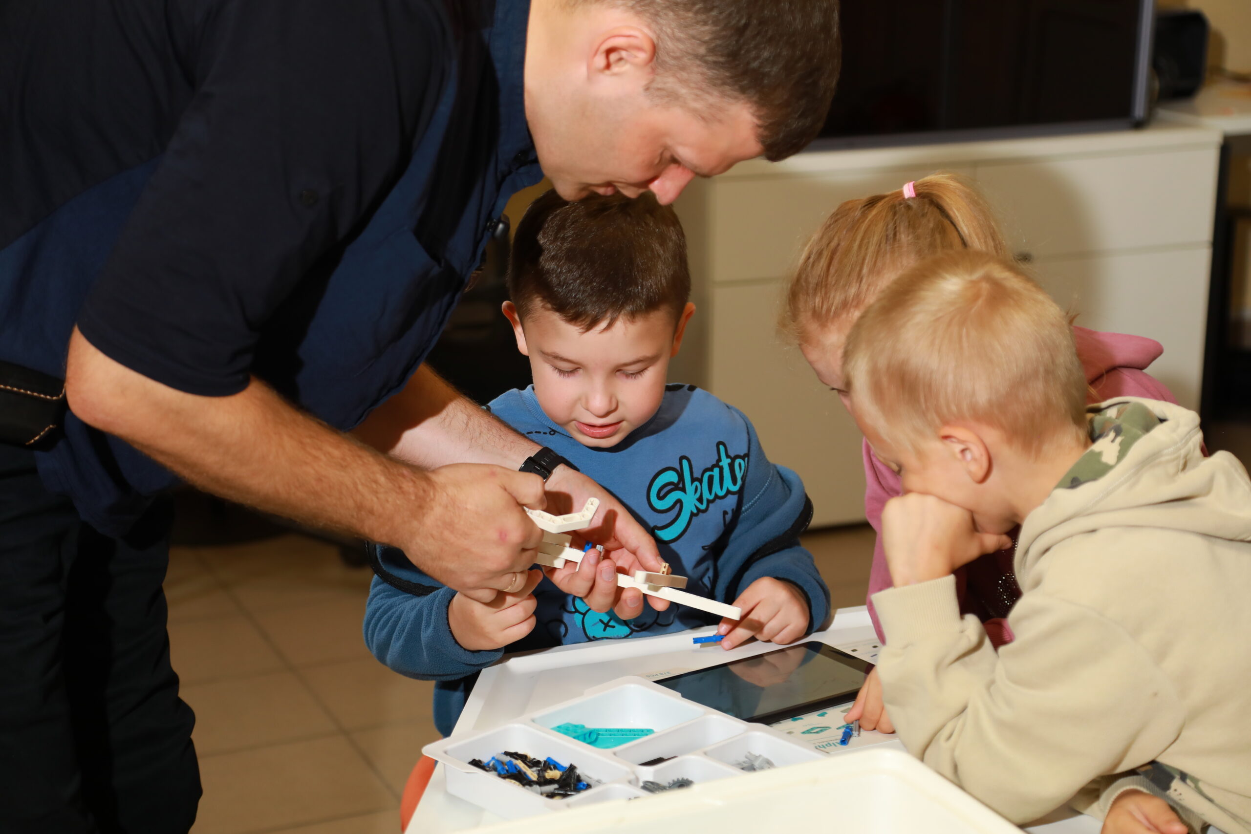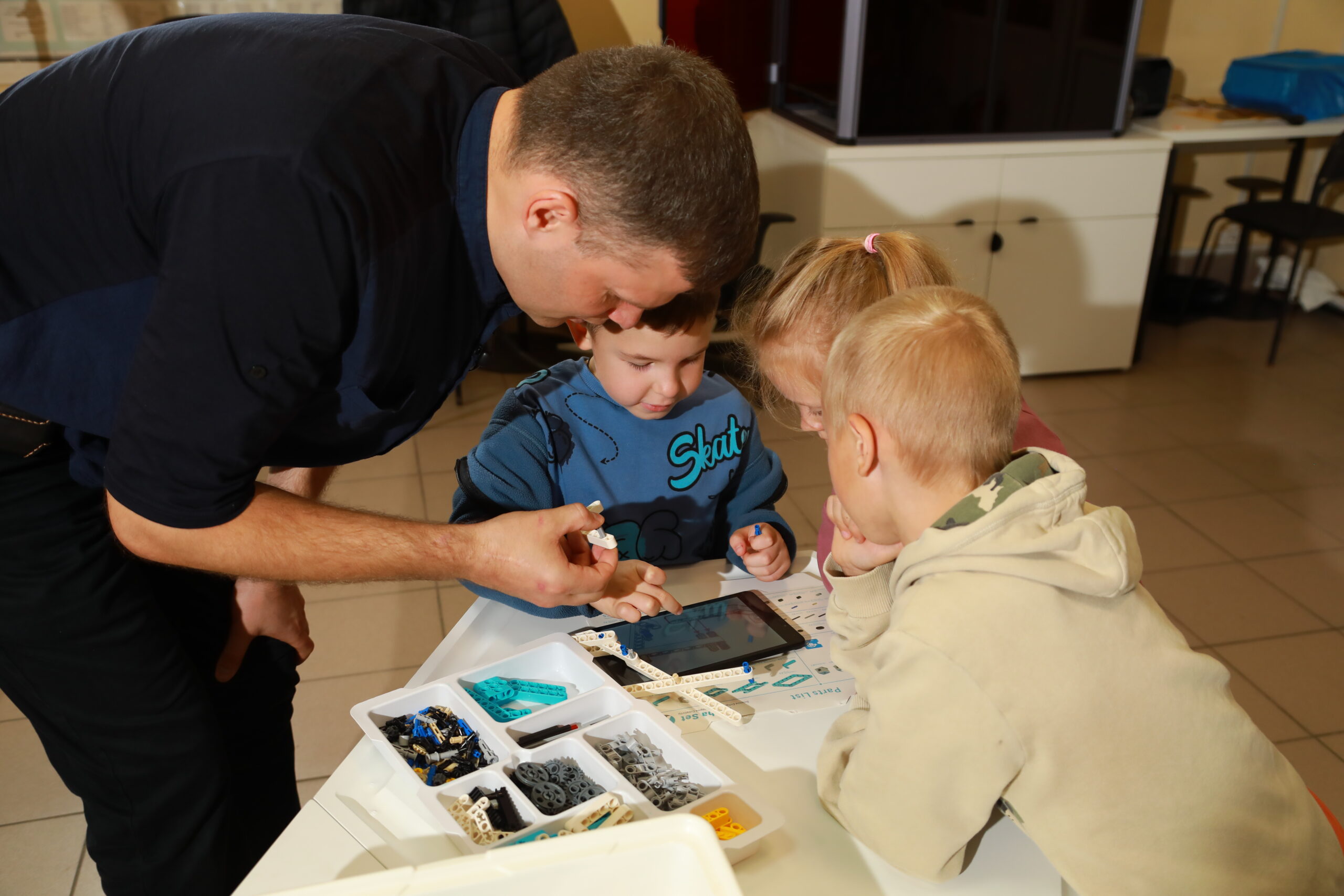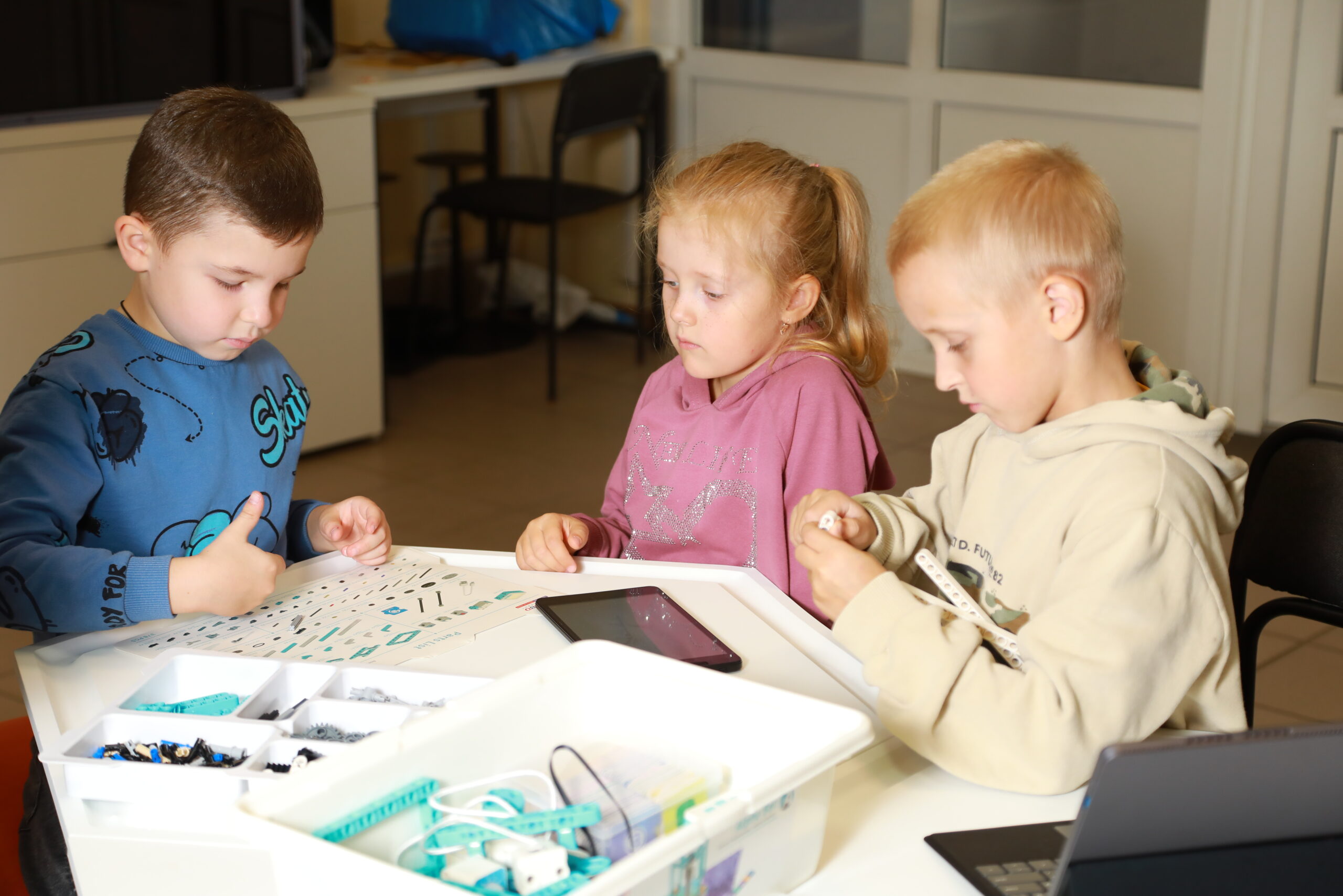 Занятие проводилось на конструкторе Робо-6. Его методический материал предназначен для освоения основ конструирования и программирования на теоретических и практических уровнях, в том числе для детей без навыков чтения и письма. В нем заложены важные основы социального поведения и предпрофильное восприятие инженерных и ИТ профессий.