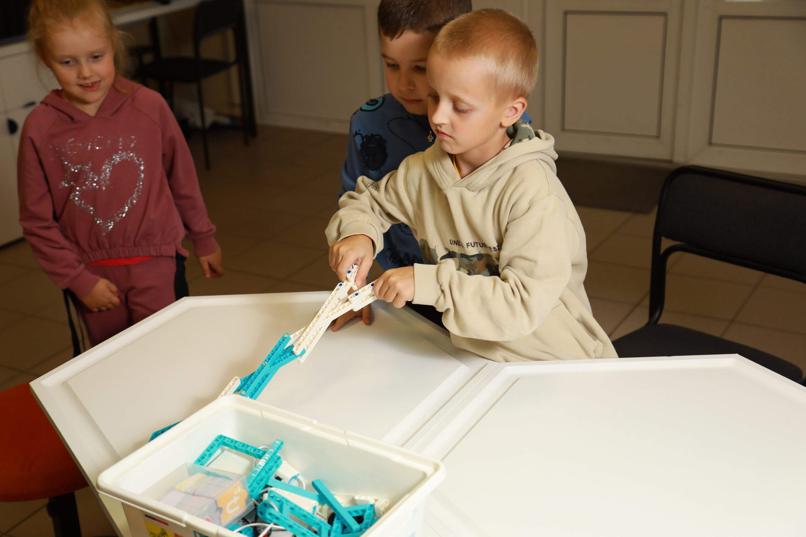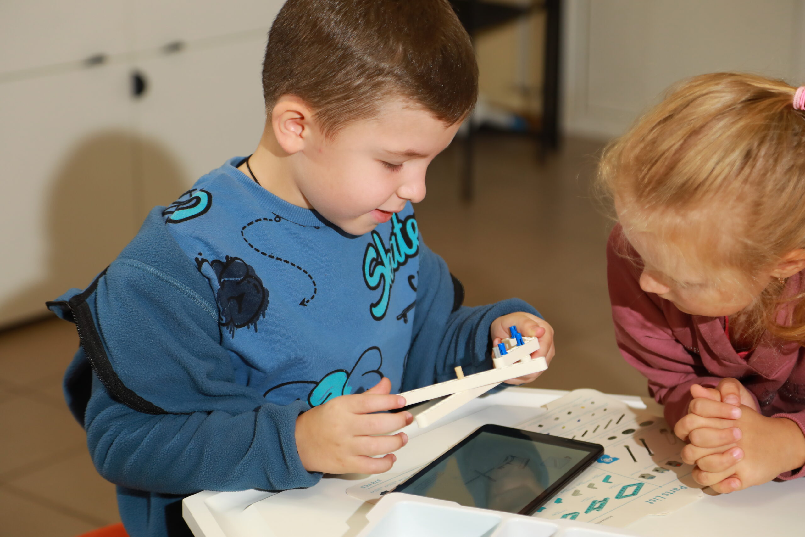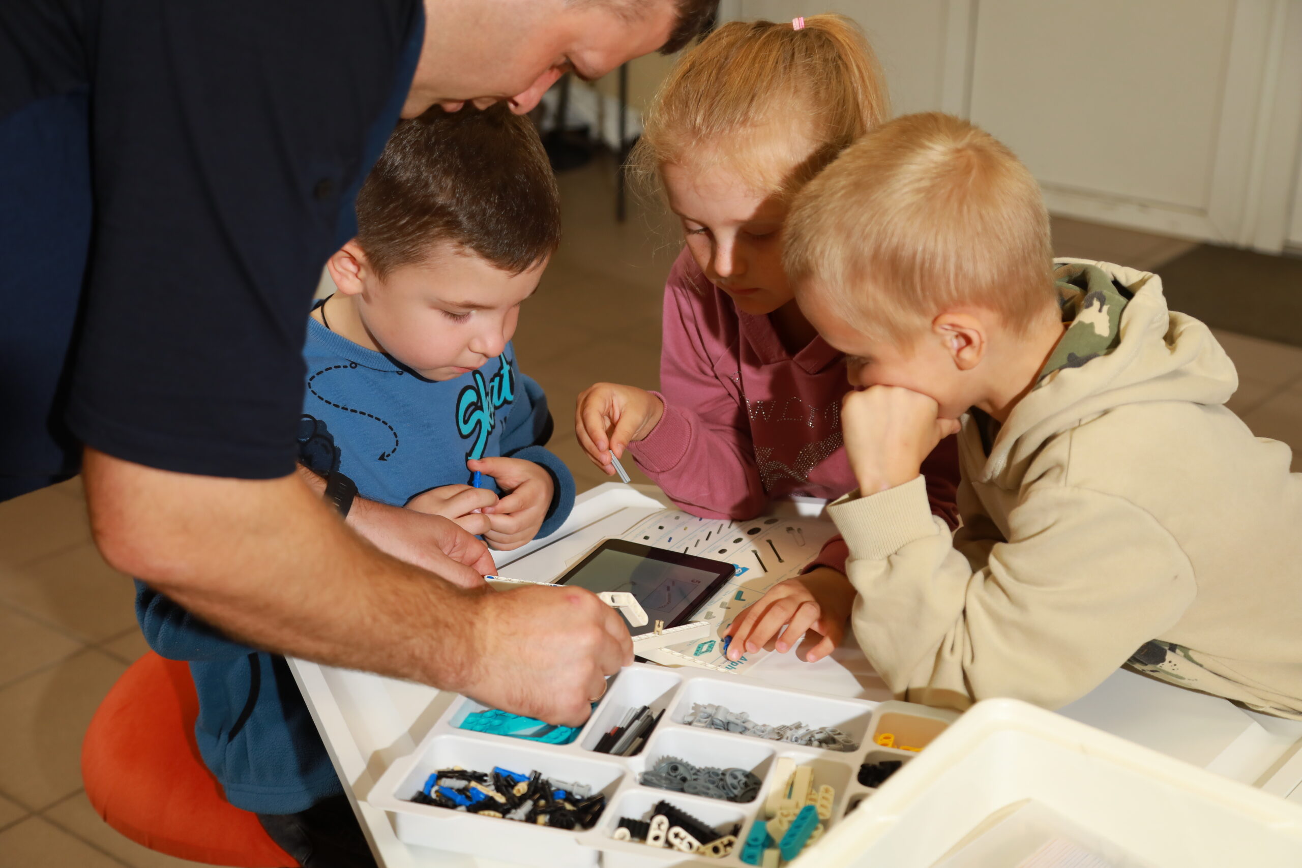 Занятие проводилось на конструкторе Робо-6. Его методический материал предназначен для освоения основ конструирования и программирования на теоретических и практических уровнях, в том числе для детей без навыков чтения и письма. В нем заложены важные основы социального поведения и предпрофильное восприятие инженерных и ИТ профессий.