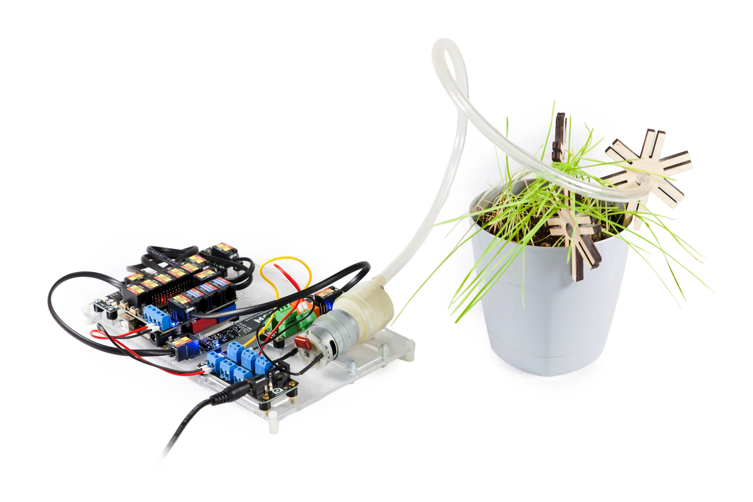 Данный набор предназначен для начального уровня обучения по основным понятиям технологии «Интернет вещей» (IoT) в концепции «Умное сельское хозяйство» для изучения базовых функций для выращивания: автополив, умное освещение, мониторинг данных. Он развивает навыки программирования, конструирования, механического и электрического монтажа. Данный набор имеет возможность подключать дополнительные датчики и исполнительные устройства, что позволит расширить круг знаний об умных вещах.